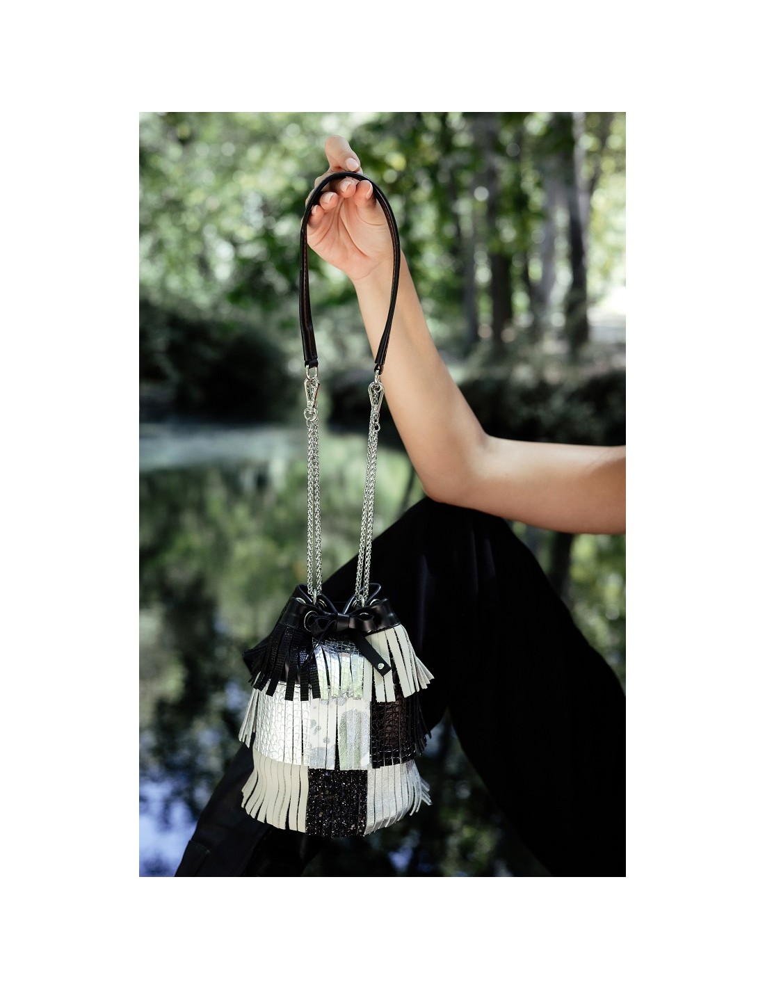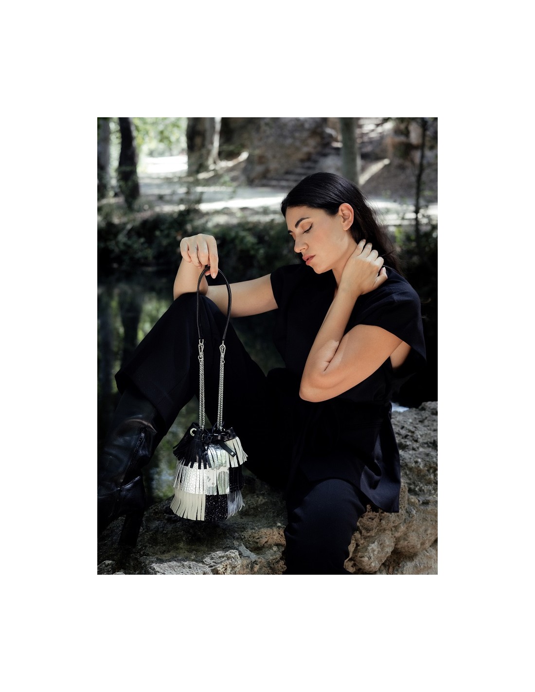 Este diseño es el destello más enigmático de la colección. Silver Highlight combina negro, beige y plateados con un animal print de vaca reinterpretado en metalizado.
