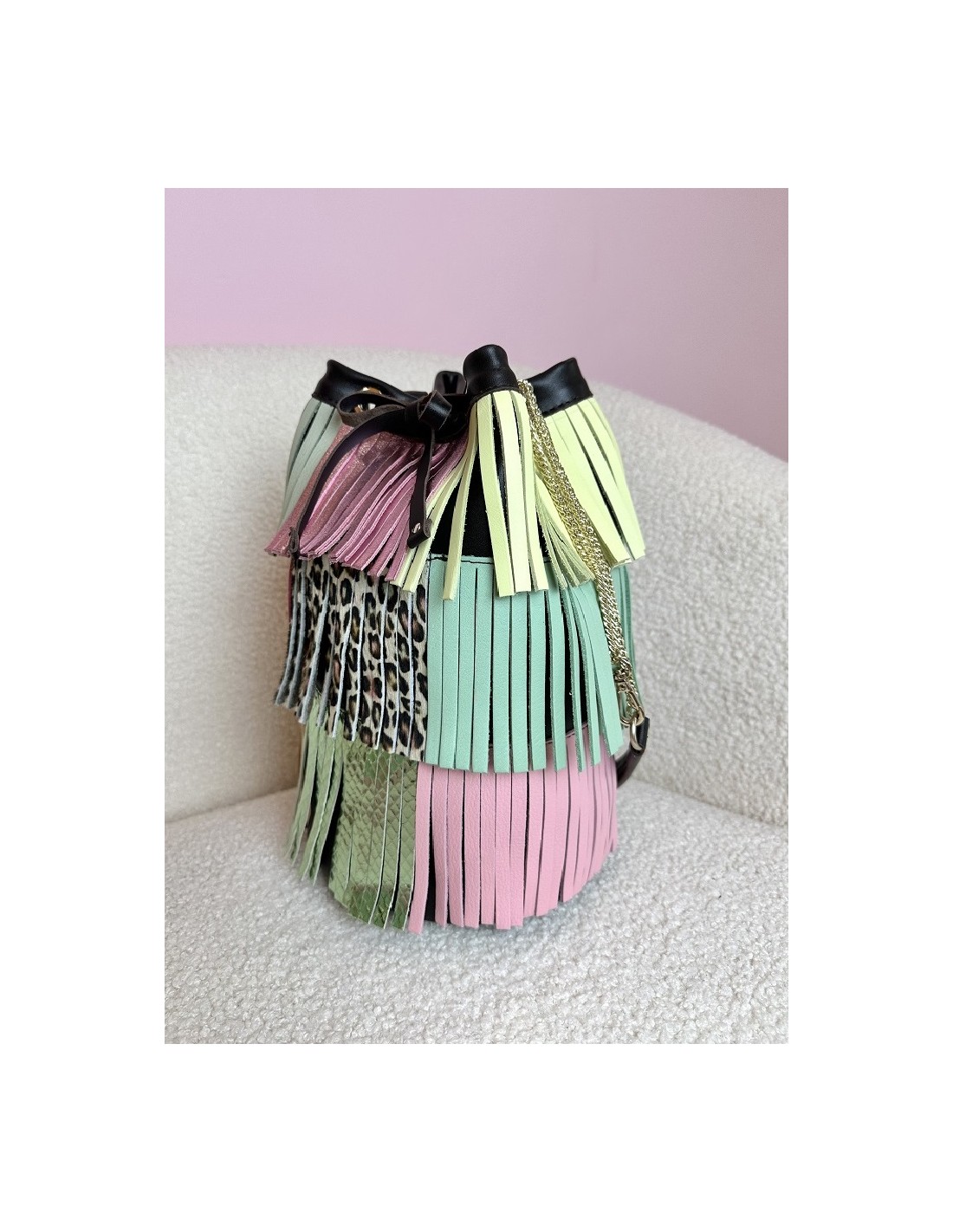 Una edición muy especial creada a partir de una piel de leopardo en tonos pastel que apareció en nuestro camino casi por casualidad y que supimos desde el primer momento que tenía que convertirse en algo único.